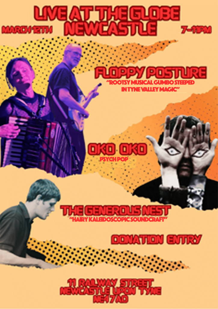 Our next Gig is on Thursday March 12th at The Globe, Newcastle with OKO OKO and The Generous Nest